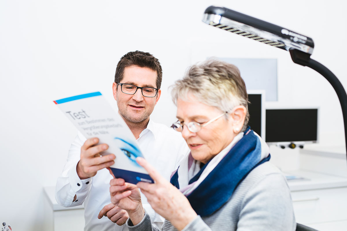 Nicht immer reichen Brille oder Kontaktlinse zum guten Sehen aus. Manchmal ist eine individuelle Lösung mit Lupen, Spezial-Brillen oder Lesegeräten notwendig. Wenn das visuelle System beispielsweise durch eine Maculadegeneration geschädigt wurde, bieten wir maßgeschneiderte Lösungen an.
